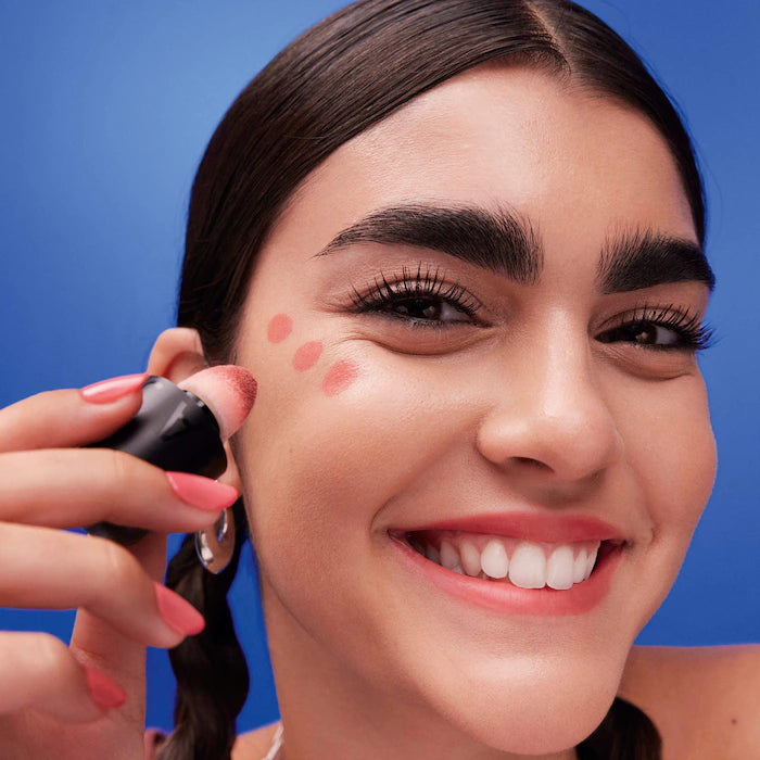 Shake each bottle well before use. Apply a dot of the liquid blush to the apples of your cheeks or lips. Blend with your fingertips, a brush, or sponge. Add more layers for deeper color or mix shades for a customized finish.