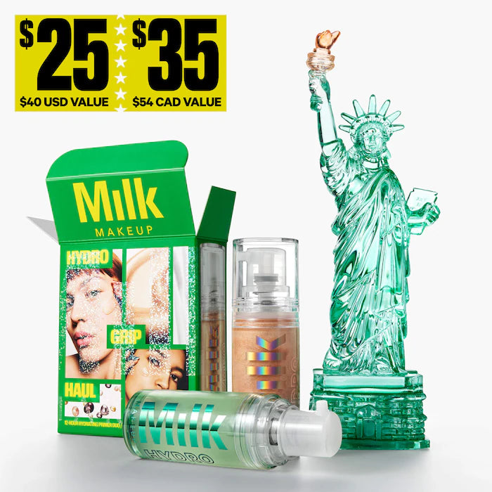 Stay glowing and locked in on the go with the Milk Makeup Hydro Grip Haul Travel-Size Primer Duo. This must-have set features two mini versions of the iconic Hydro Grip Primers — one for a dewy finish and one with a luminous glow. Perfect for travel or touch-ups, these primers hydrate, smooth, and grip makeup to keep your look fresh and long-lasting wherever you go.