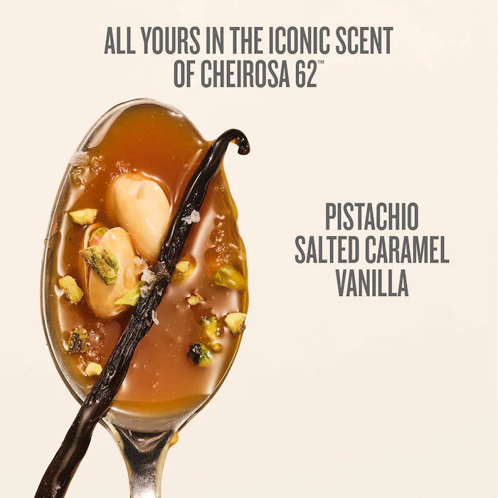 ✨ Signature scent profile: top notes pistachio & almond, heart notes heliotrope & jasmine petals, dry-down vanilla, salted caramel & sandalwood.